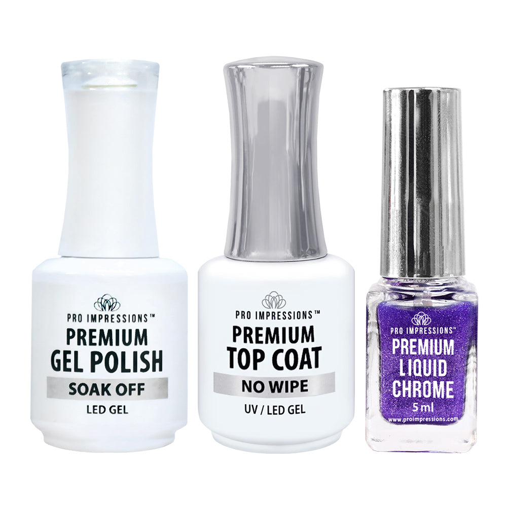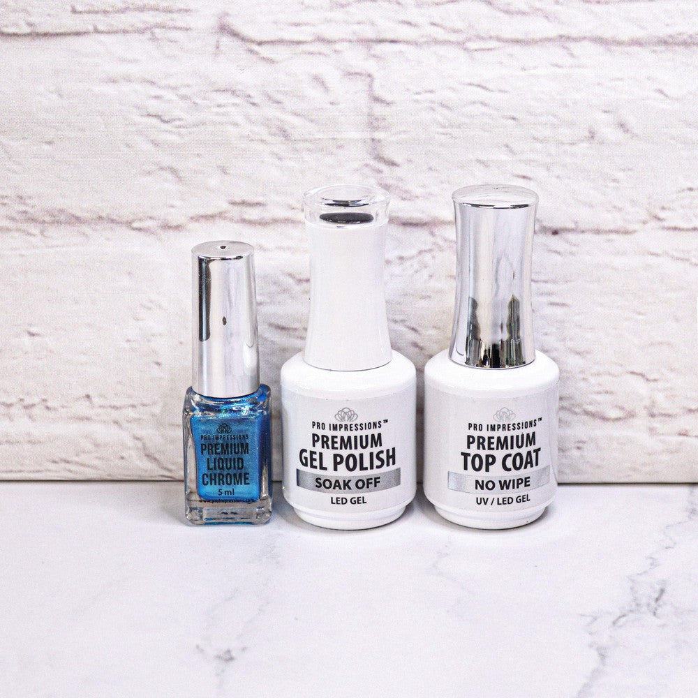 Introducing our NEW Premium Liquid Chrome! No need for those messy jars of chrome powder anymore with this dust-free revolutionary formula that when rubbed into our Premium Top Coat (no wipe), it leaves behind a beautiful chrome effect